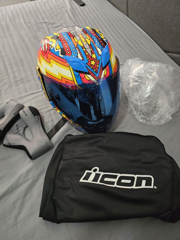 Worn twice. Helmet is a large but fits like a medium and doesn't fit me. Helmet comes with a blue and clear visor. I did swap the cheek pads to a medium but you will get the stock large cheek pads as well. Helmet is basically brand new. You can find this Helmet at Revzilla for $300, but I'm looking to sell mine for $150. Just need to sell it since it doesn't fit.