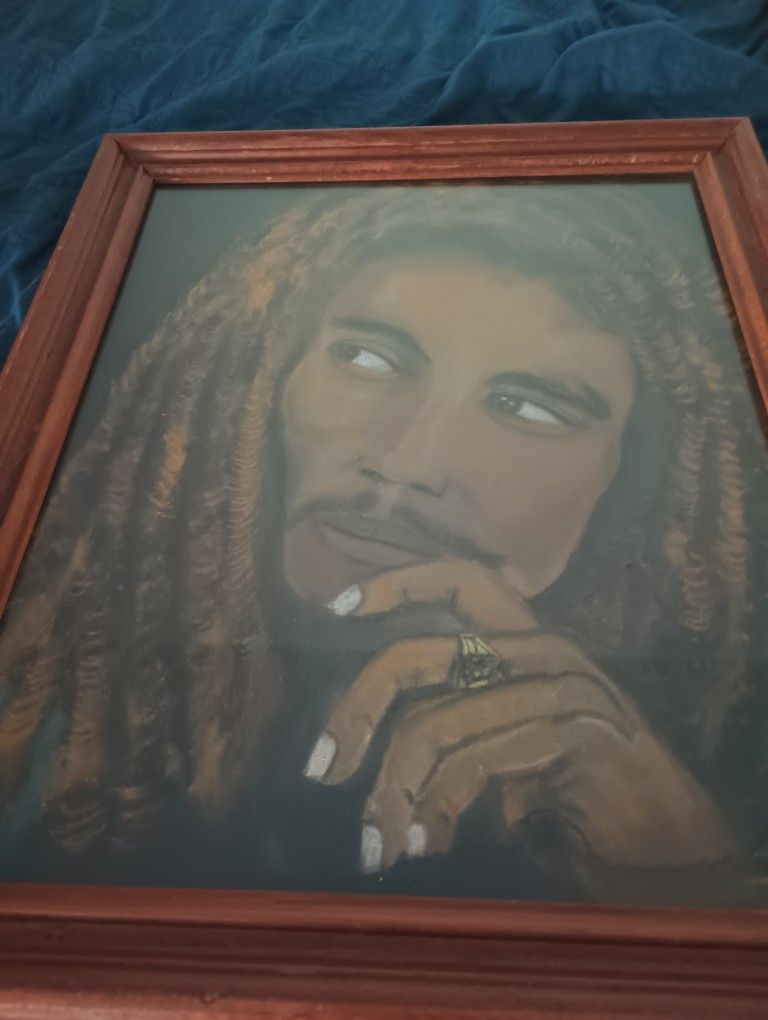 Bob Marley π¨ on canvas 16*20 media used pastels and acrylics , framed with glass. πΆ"Don't worry about a thing, every little thing is gonna be alright"
