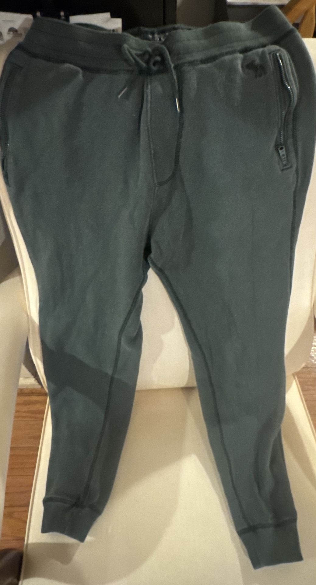 Olive green joggers featuring a side zipper pocket and an Abercrombie & Fitch brand logo. Smoke free pet free house Size small