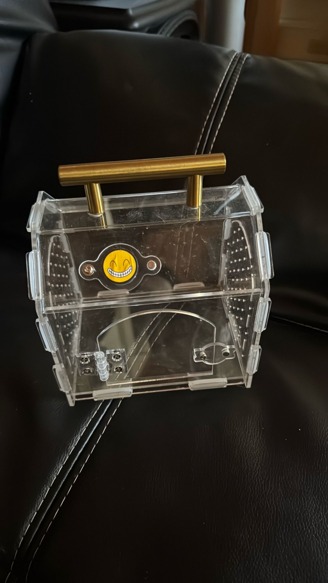 This is great for your kids to open compartments. Want to put your bug in the other two decorate their house breathing holes a metal brushed copper looking handle