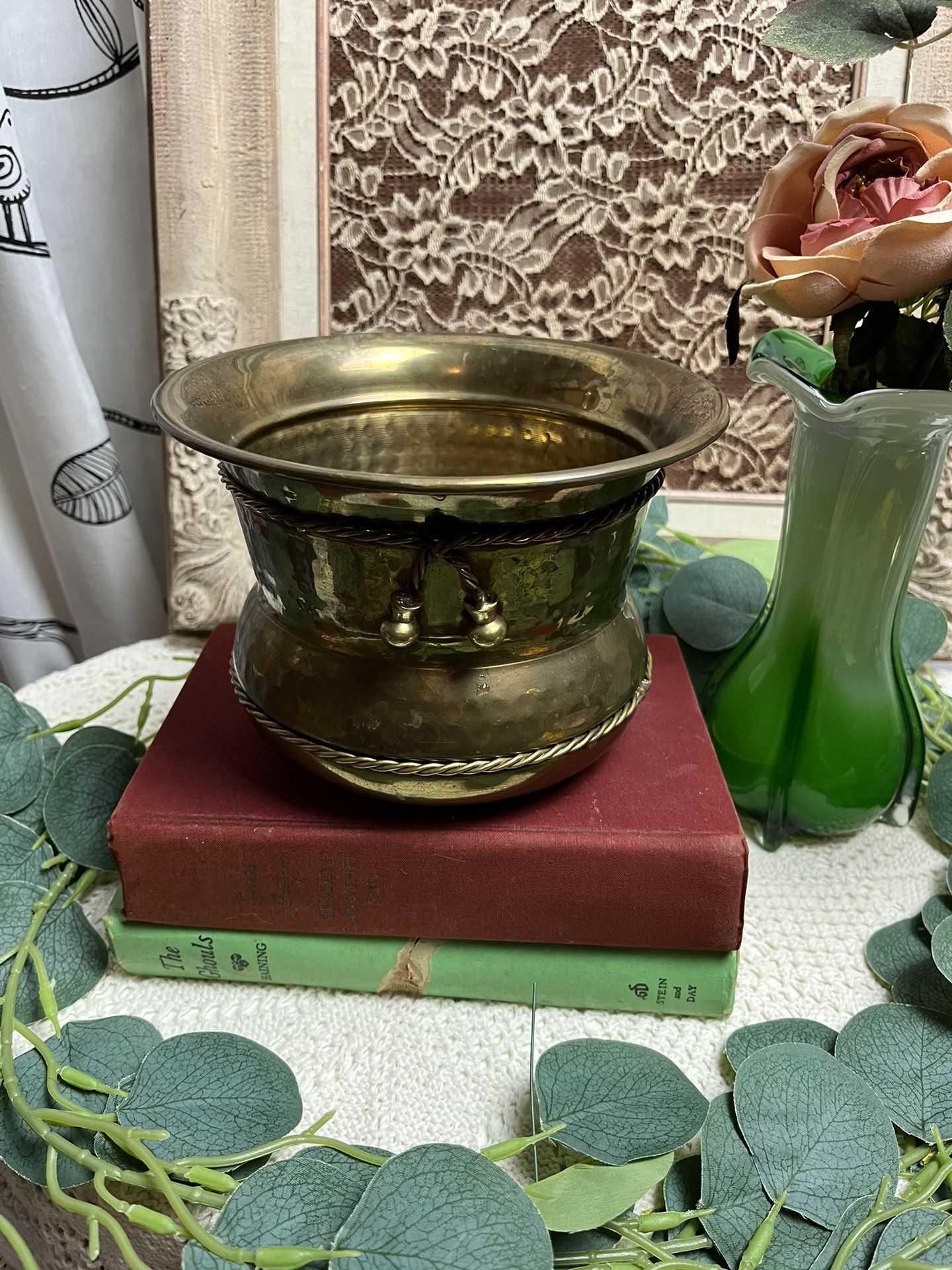 Beautiful brass planter with unique shape and rope detailing, perfect for plant, greenery or floral