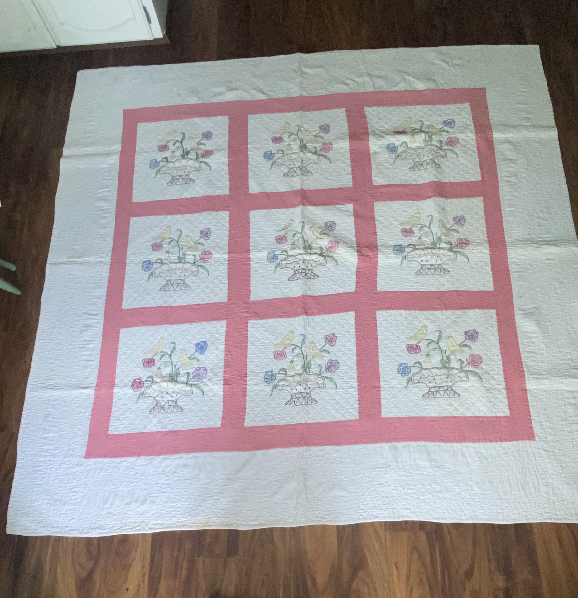 Beautiful antique quilt with embroidery. Size approximately 78x78
