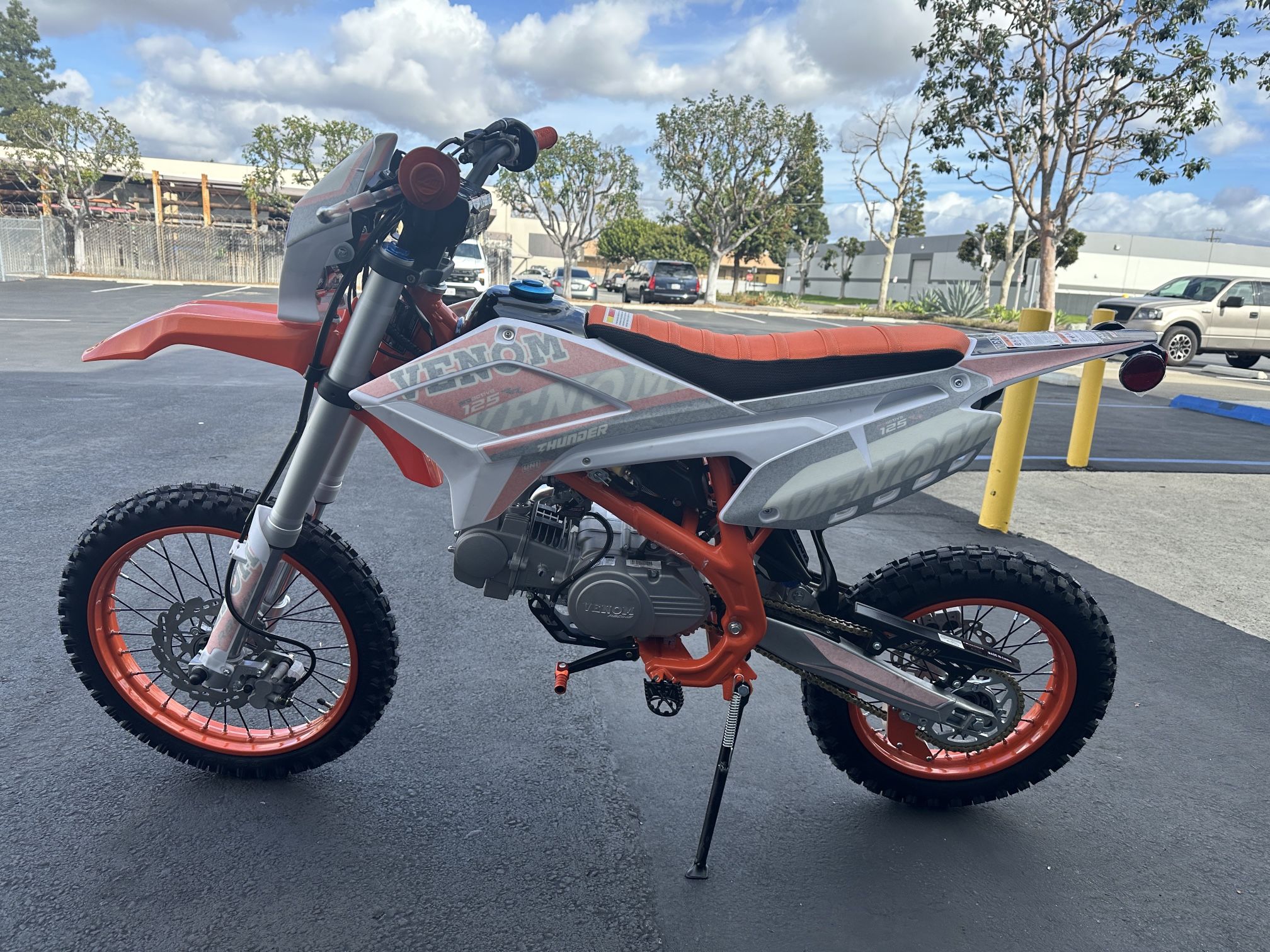 Venom Thunder VX125 dirt bike Search Venom Thunder 125cc Dirt Bike on YouTube for videos Brand new 4-stroke 4-speed Front Headlight Kickstart Upgraded front shocks Upgrades rear shock Upgraded gold chain Upgraded orange gear shifter Upgraded exhaust Pickup at 1380 Caldwell Circle, Anaheim 92805 Call or message to make an appointment Financing with low monthly payments available - ask us to send you the link to apply Venom Motorsports 1380 Caldwell Circle, Anaheim 92805 Fun and rides like a Honda pit bike Keywords: YZ125, YZ250, CRF, KLX, Yamaha