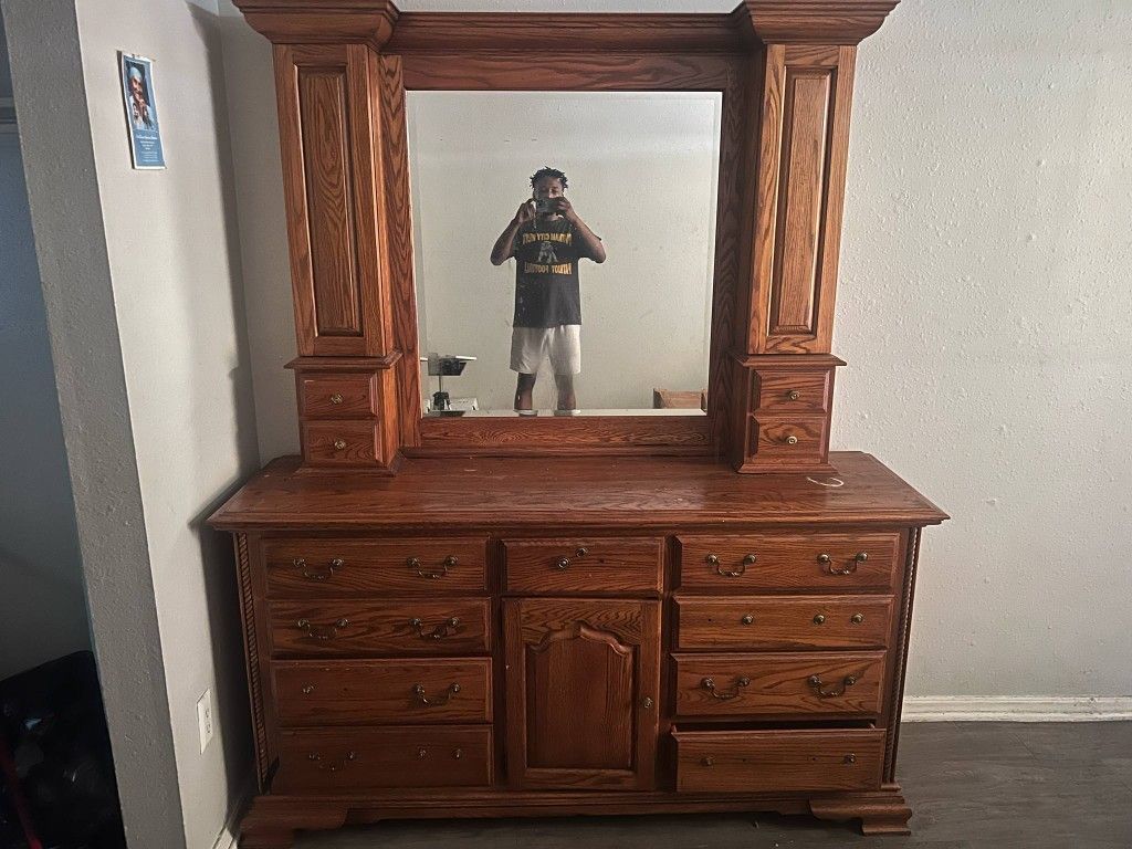 The mirror is detachable also must be able to come pick it up moving out my apartment and the new one doesn't have space for the dresser so I have no where to put it(also price is negotiable)