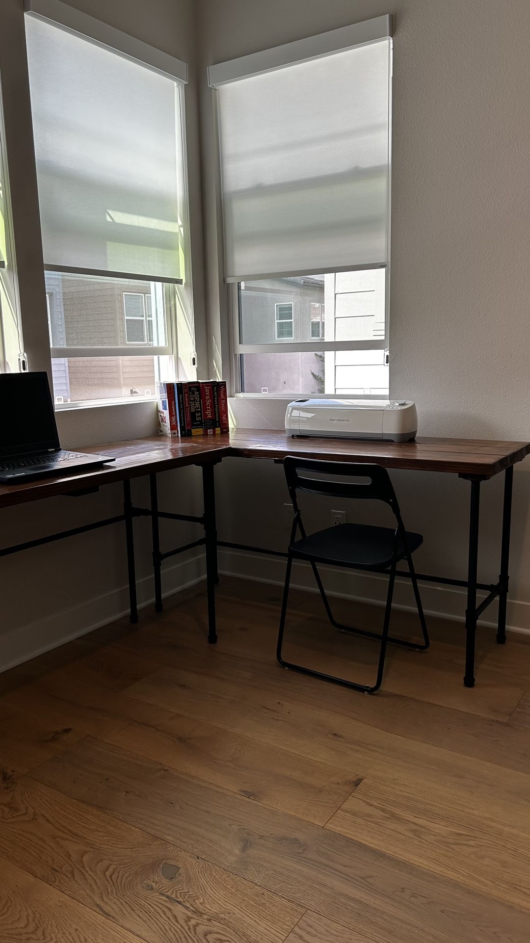 Sturdy hand made desks Desk top can easily be replaced Made with galvanized pipes and 2x8 pine wood.