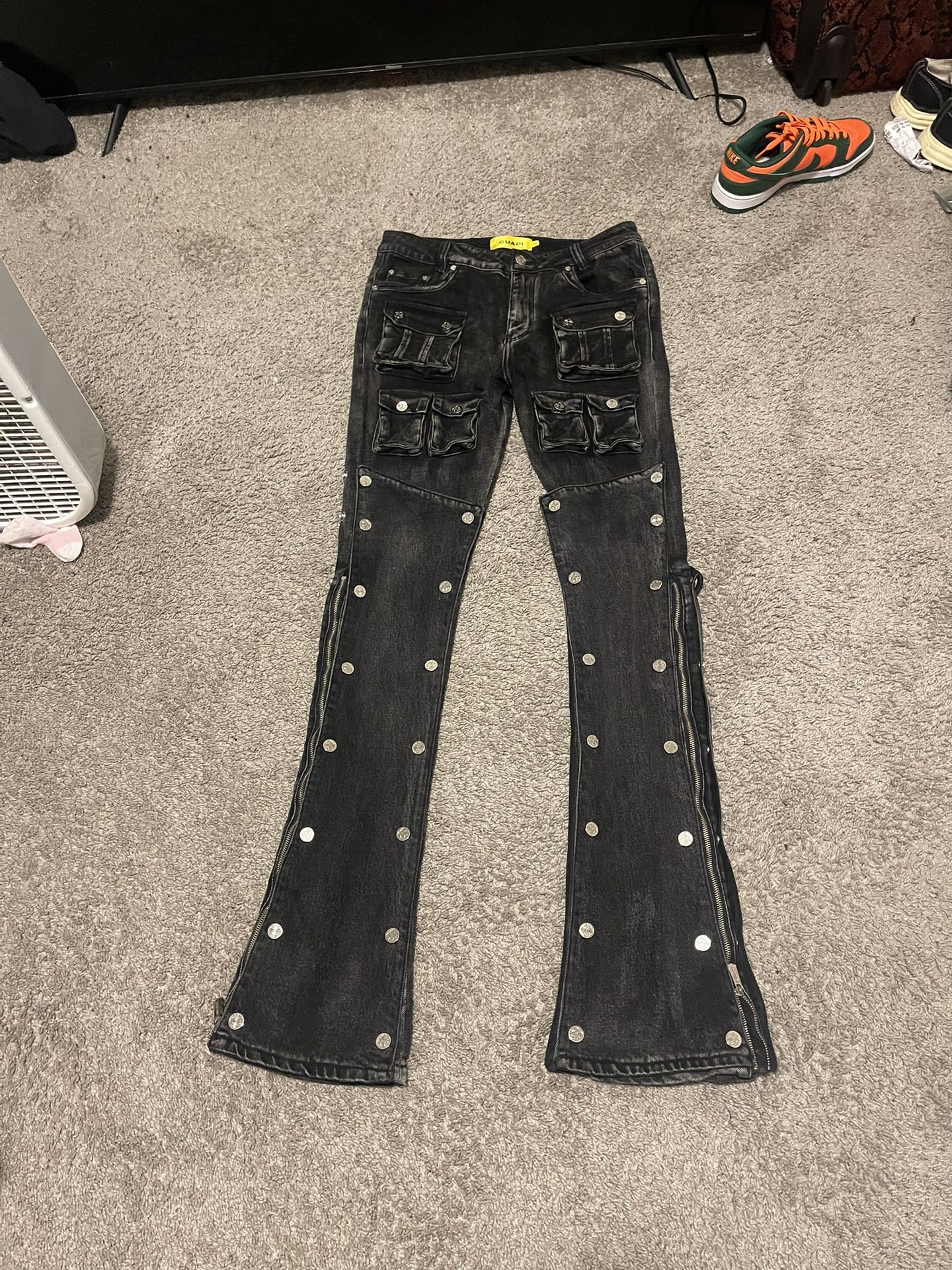 Iron Black Stacked Button Guapi Jeans