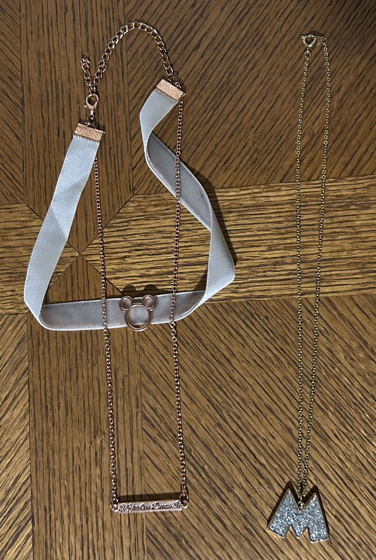 $5 each The one on the left is a choker necklace & the gold plate says, “ if you can dream it”