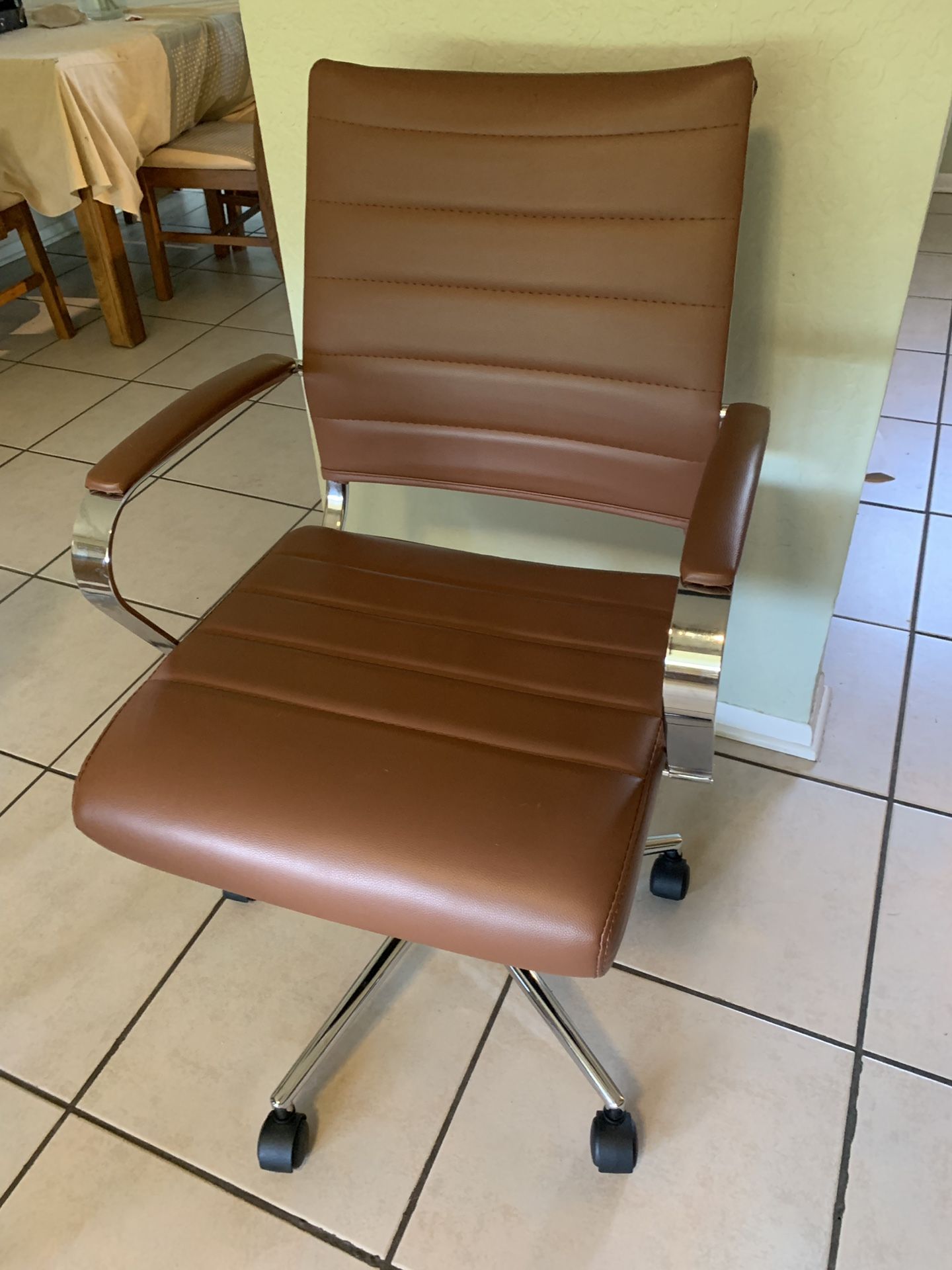 2xhome brown mid century modern chair, great condition Height and tilt adjustable Chrome base with wheels Retails at $145 new