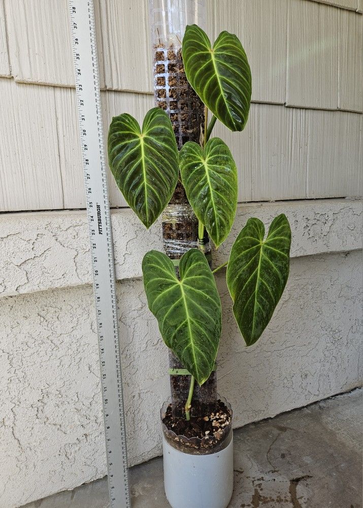 Fully rooted in clear container with drainage holes. This was a chop and extend and Is growing beautifully. I have it prepared to root into the moss with grafting tape and/or clips. Some ariel roots have rooted into the moss pole! Keep sphagnum moss pole moist. Bigger mature leaves. The moss pole has already been extended and I have a wooden stick behind the moss pole for support. Please see ruler for size reference. Its about 3ft tall and the moss pole height is almost 45inches so there will be more room for the plant to grow. Ruler in photos to show size. Cash and pick up only please. Cross streets are La sierra and Arizona in Riverside. Message me for more details. See my other listings for more plants! π©·πͺ΄π
