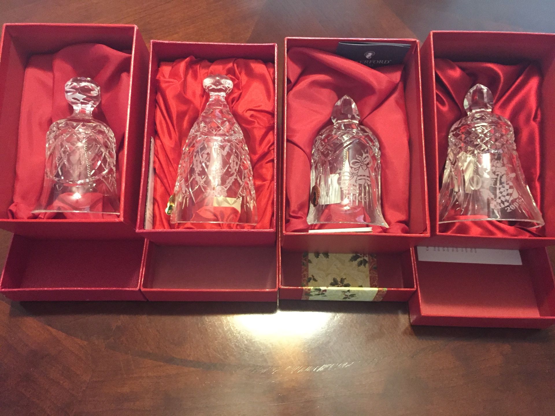 Complete collection of Waterford crystal bells from 1(contact info removed). The ultimate Christmas gift. 1500 value will include 6 other bells. Thlis will make a great gift for that special person. All bells are in original box. Make offer