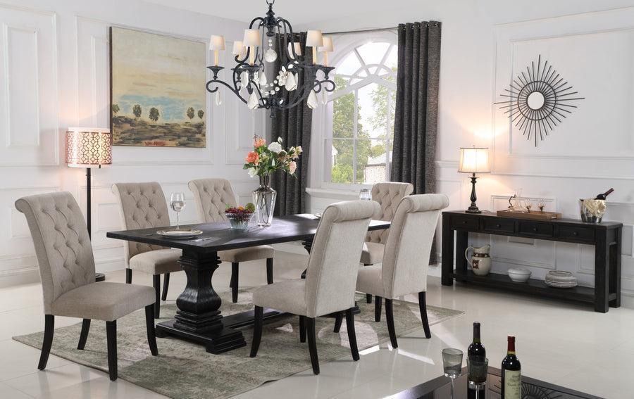 7pc Dining Set With Linen Tufted Chairs $899
