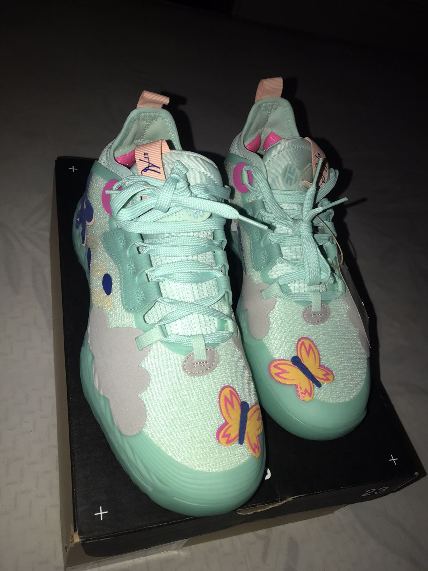 Brand New Never Been Worn Ever, Brought them for my daughter but she’s but she’s a size 9.5 And these Shoes are size 8.5 Very very special shoes these are, James Harden definitely put a lot of thought into these. Men and Women shoe as Well! Btw I don’t have the box for these but I will give my Lebron shoe box if ya need the box…