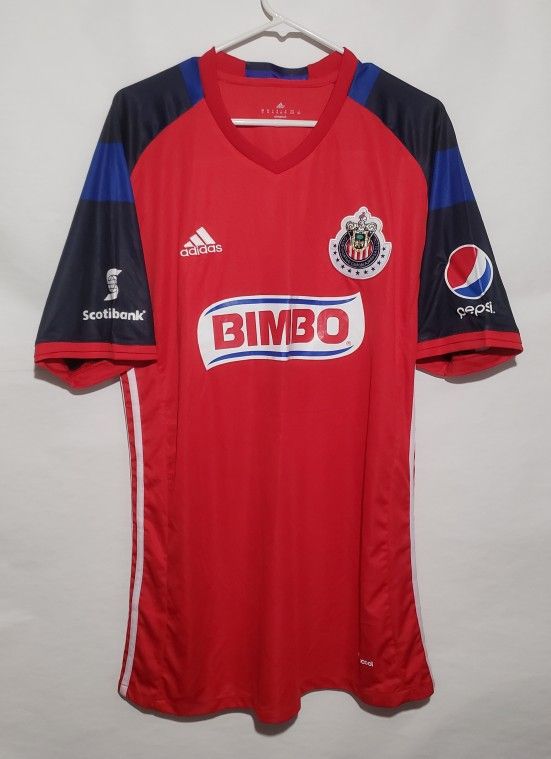 VERY AUTHENTIC ADIDAS CLUB GUADALAJARA JERSEY 2017 IN EXELLENT CONDITION MENS ADULT SIZE XL WATCH MEASUREMENTS TO MAKE SURE FITMENT CLEAN NO STAINS NO HOLES RED COLOR TECATE / BIMBO/SCOTIABANK/PEPSI LOGOS BEAUTIFUL CHIVA LOGO PATCH ON CHEST THISNIS A BEAUTIFUL JERSEY YOU WILL TURN HEADS REGULAR PRICE BRAND NEW $140 ANY QUESTIONS LET ME KNOW