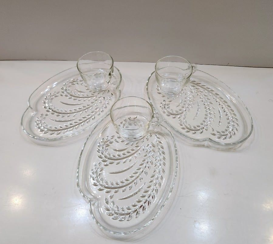 3 Vintage Federal Glass Homestead Glass Snack Plates with Cups