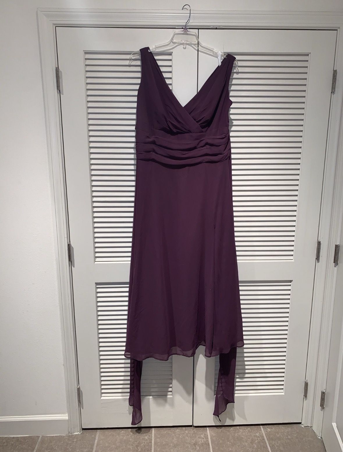 From David’s Bridal. Plum purple color. Size 20. Worn one time. Excellent condition. Wedding. Firm. Cash.