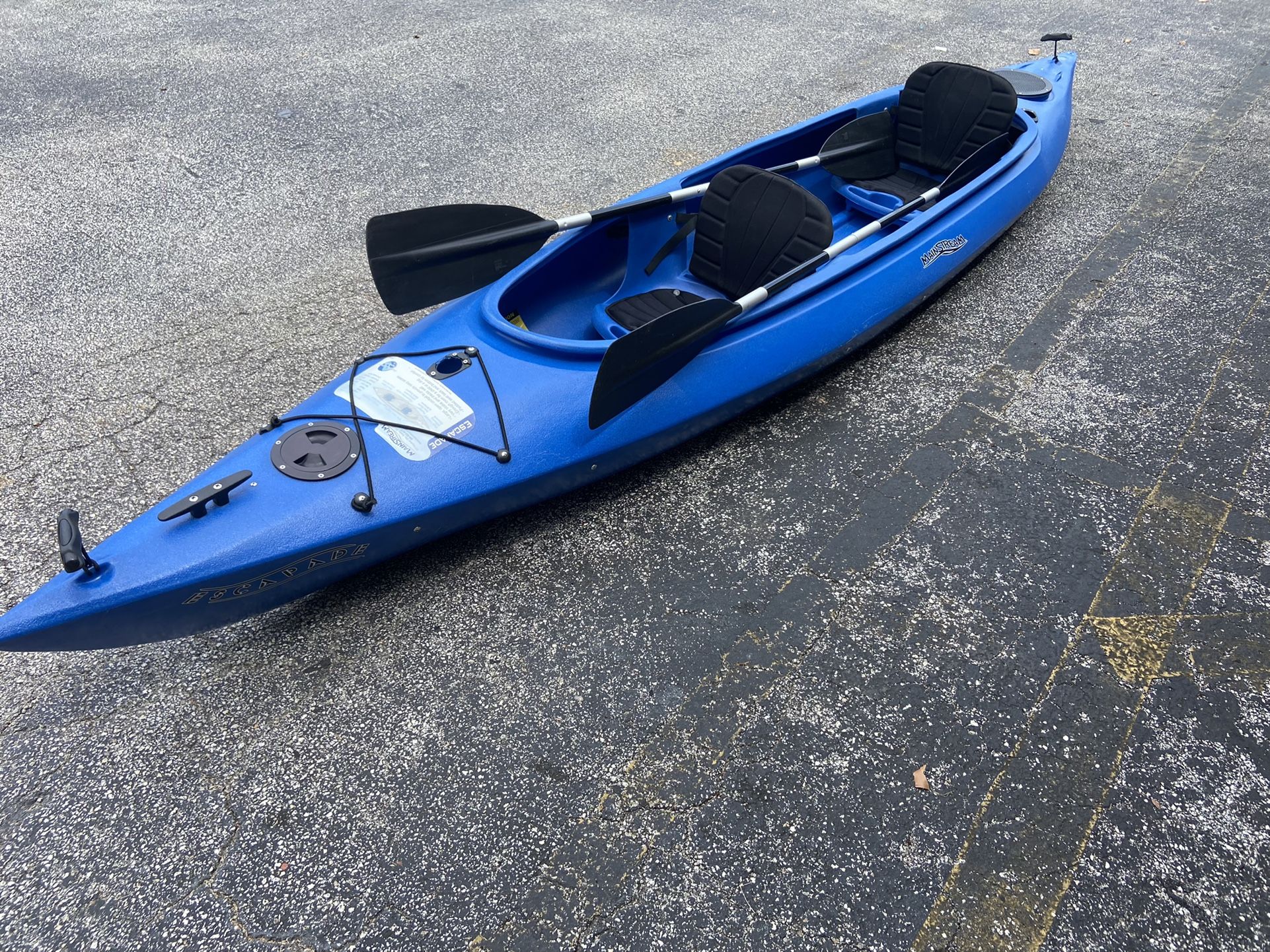 13.5ft long 32in wide 3 rod holders, 2 storage hatches (4.5”and 8” diameter), 2 dual paddles