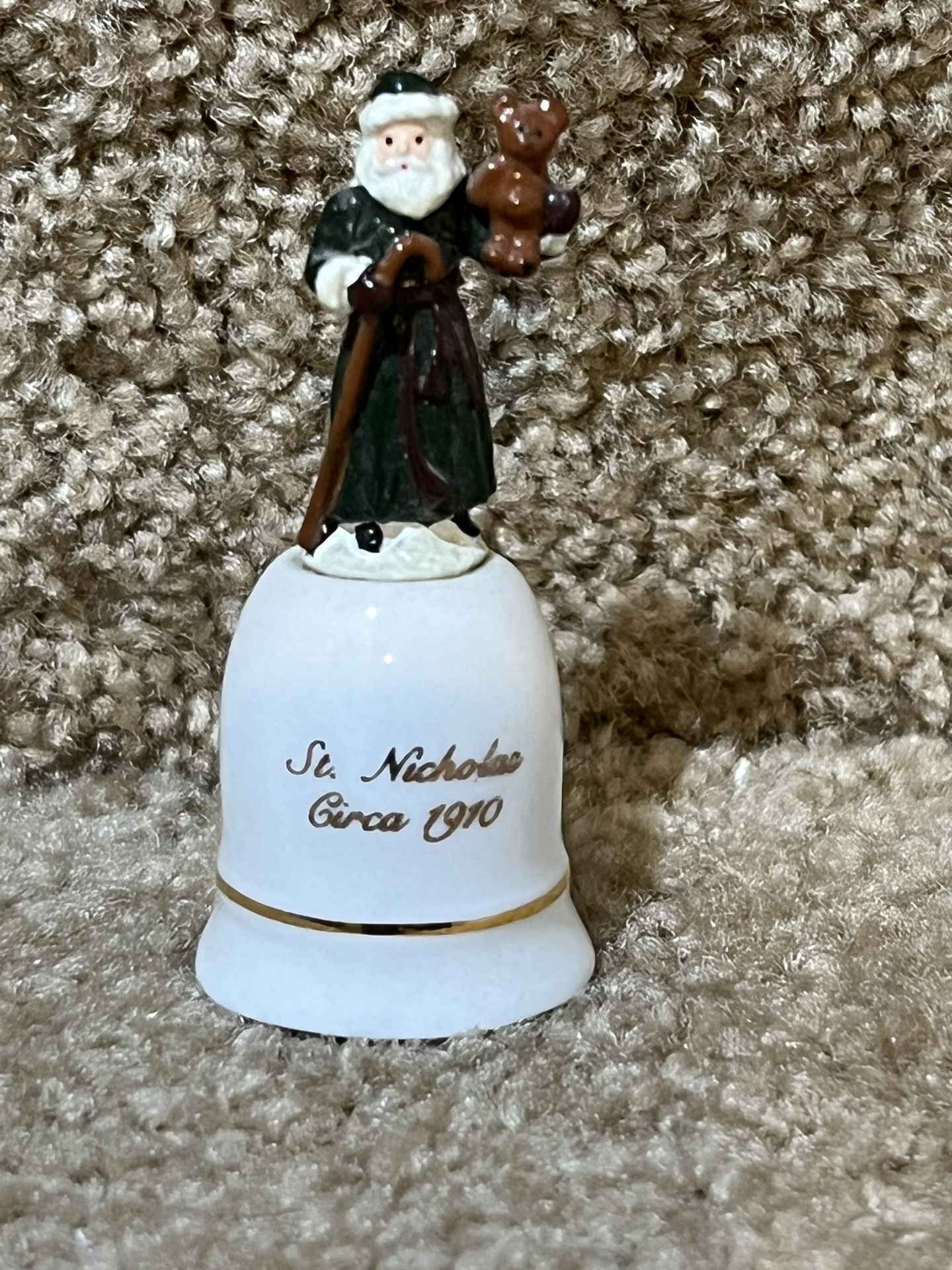 VTG Enesco Porcelain Thimble Mini Old World Pewter Santa St Nicholas Circa 1910