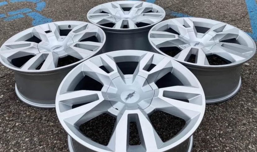 22" FACTORY REPLACEMENT RIMS SET! BRAND NEW WHEELS, NEVER BEEN MOUNTED! WILL FIT 1(contact info removed) GM TRUCKS ALL TRIMS ALL MODELS ALL CAPS INCLUDED. 6X5.5 6X139 6-LUG BOLT PATTERN SET OF FOUR! NEW AND USED TIRE SETS AVAILABLE CADILLAC ESCALADE GMC YUKON SIERRA DENALI CHEVROLET SILVERADO TAHOE SUBURBAN CHEVY AVALANCHE 2019-2023 DODGE RAM 6-LUG MESSAGE TO VERIFY FITMENT. WE FINANCE NO CREDIT NEEDED AMAZING PRICE $1,299 FOR ALL FOUR WHEELS!