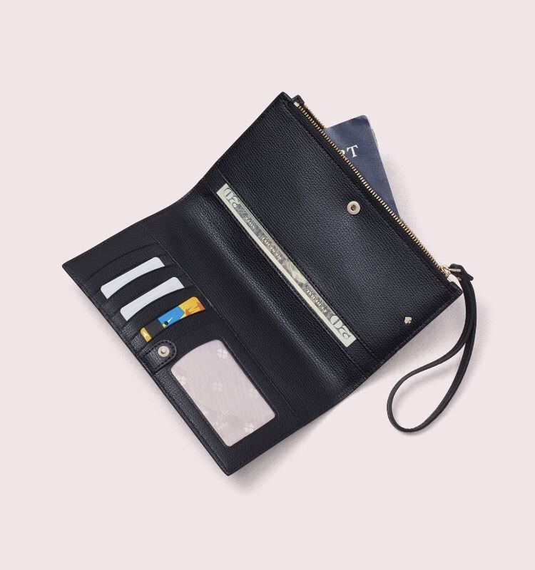 Kate Spade Sylvia Continental Black Leather Wristlet Wallet Purse Clutch