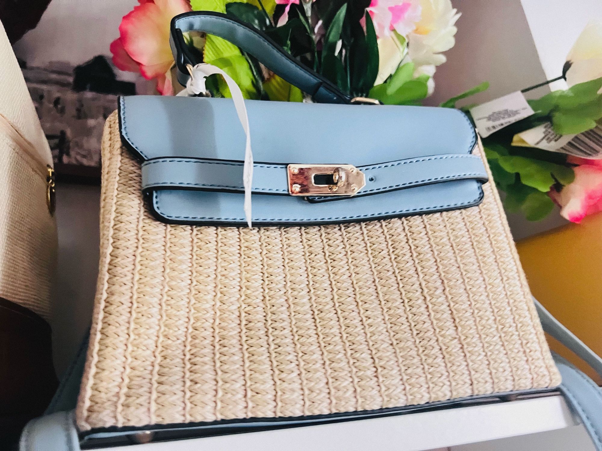 Stay stylish all season long π Selling this gorgeous boutique rattan-style handbag with structured woven straw and soft light blue faux leather accents β perfect for beach days, brunch dates, or vacation vibes! β¨ Features: β’ Rattan-inspired woven body β’ Pastel blue faux leather flap, handle & strap β’ Chic gold-tone twist-lock closure β’ Top handle + detachable crossbody strap β’ Lightweight yet structured β eye-catching design! β’ Boutique find β not mass produced πΈ Asking: $[50] π Smoke-free home |