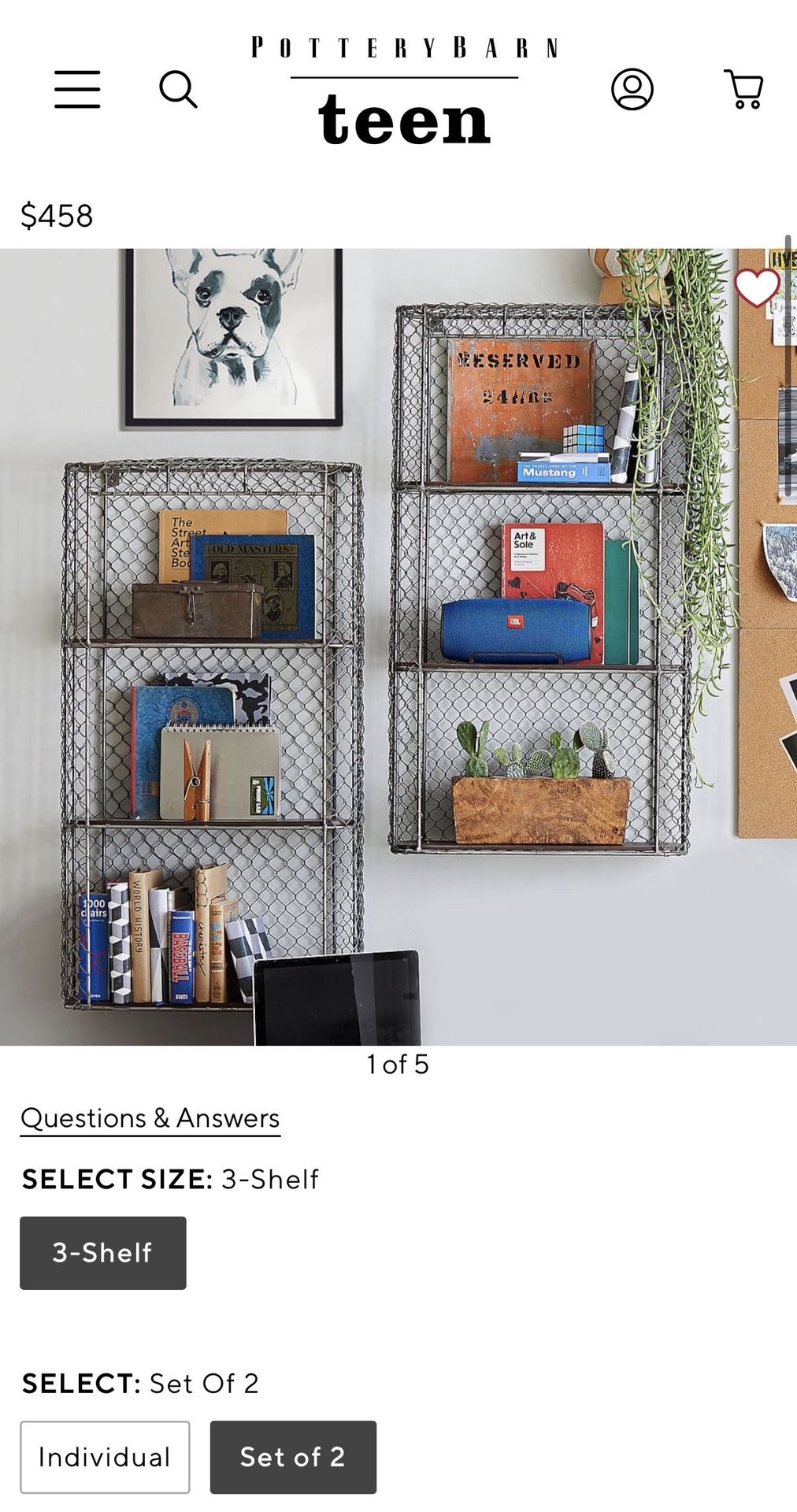 Two, 3-shelf units (H40” x L22” x D7”) & one single shelf unit (H5.5”x L36” x D9.5”). Shelves are handcrafted of wire & dark wood. Ea. Lg shelf weighs approx. 14 lbs. & has an approx weight capacity of 35 lbs. Small (single shelf) weighs approx. 5 lbs. & has an approx weight capacity of 10 lbs. EXCELLENT CONDITION! Originally paid $550 for all 3 shelves.