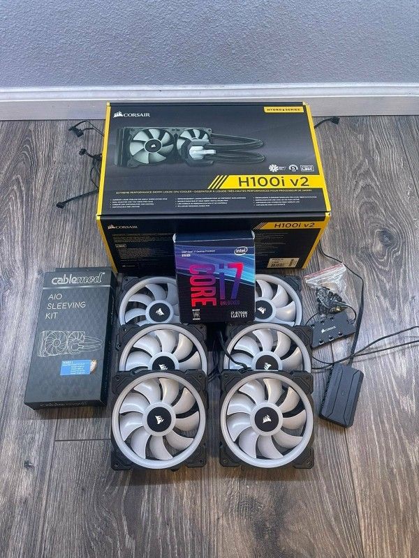 This listing is a bundle for the following pc parts: - i7 8700k CPU - Corsair H100i V2 AIO - x6 Corsair LL120 Fans (Black) *Note: DOES NOT COME WITH AIO SLEEVE AS IT IS ALREADY SOLD* All parts listed work perfectly with no issues. The pictures show what you will receive. Tags Intel Gaming Motherboard Pc Parts Computer i9 9900k i9 10900k I7 7700k 8700k 9700k i5 7600k 8600k 9600k EVGA ASUS MSI GIGABYTE COOLERMASTER Asia horse RTX 2060 2070 2080 super 2080ti 3070 3080 3090 Gtx 1050 1050ti 1060 3gb 1060 6gb 1070 1070ti 1080 1080ti nzxt amd graphics card FPS