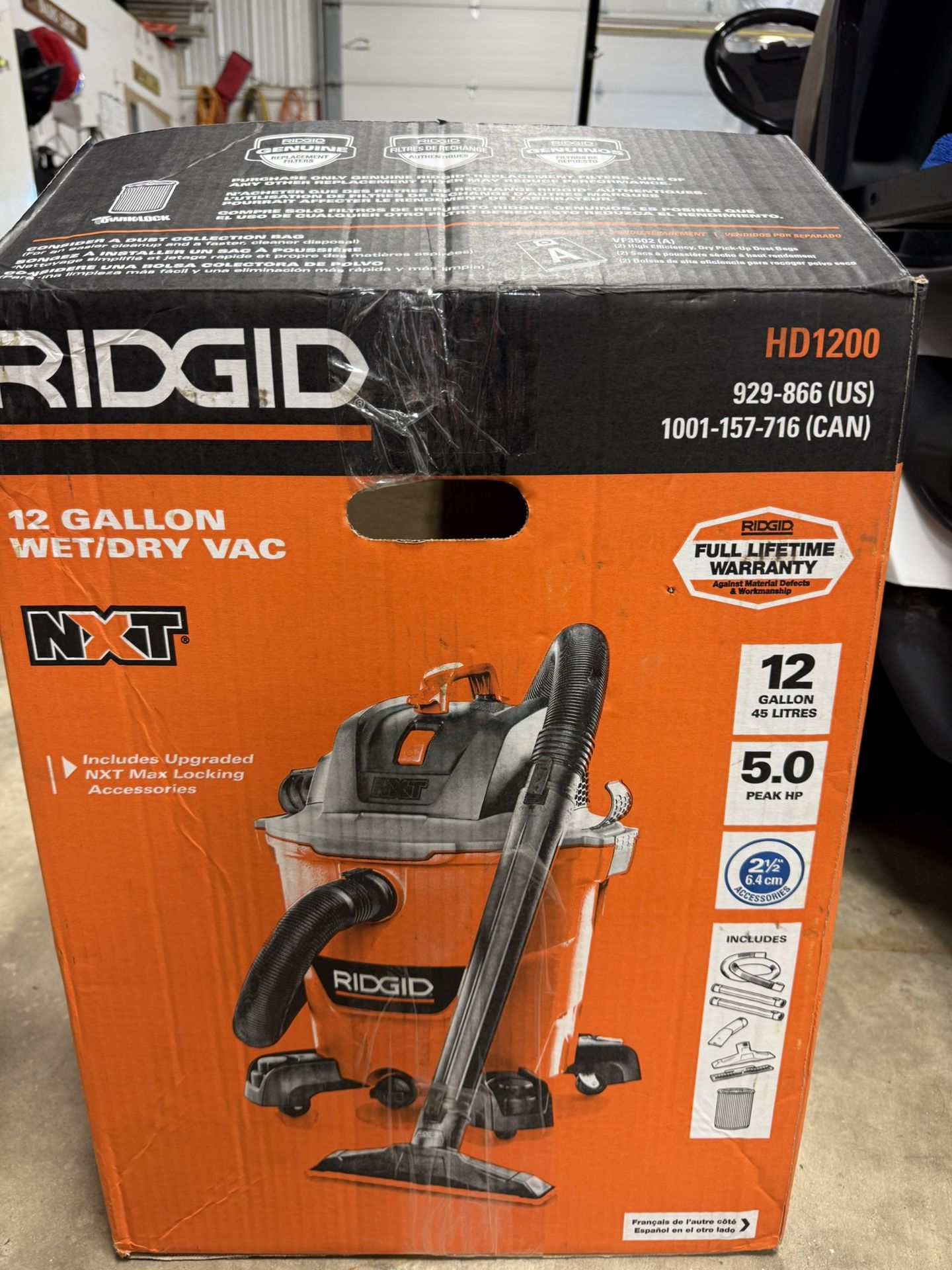 RIDGID 12 Gal. 5.0 Peak HP NXT Shop Vacuum Wet Dry Vac with General Debris Filter, Locking Hose and Attachments HD1200