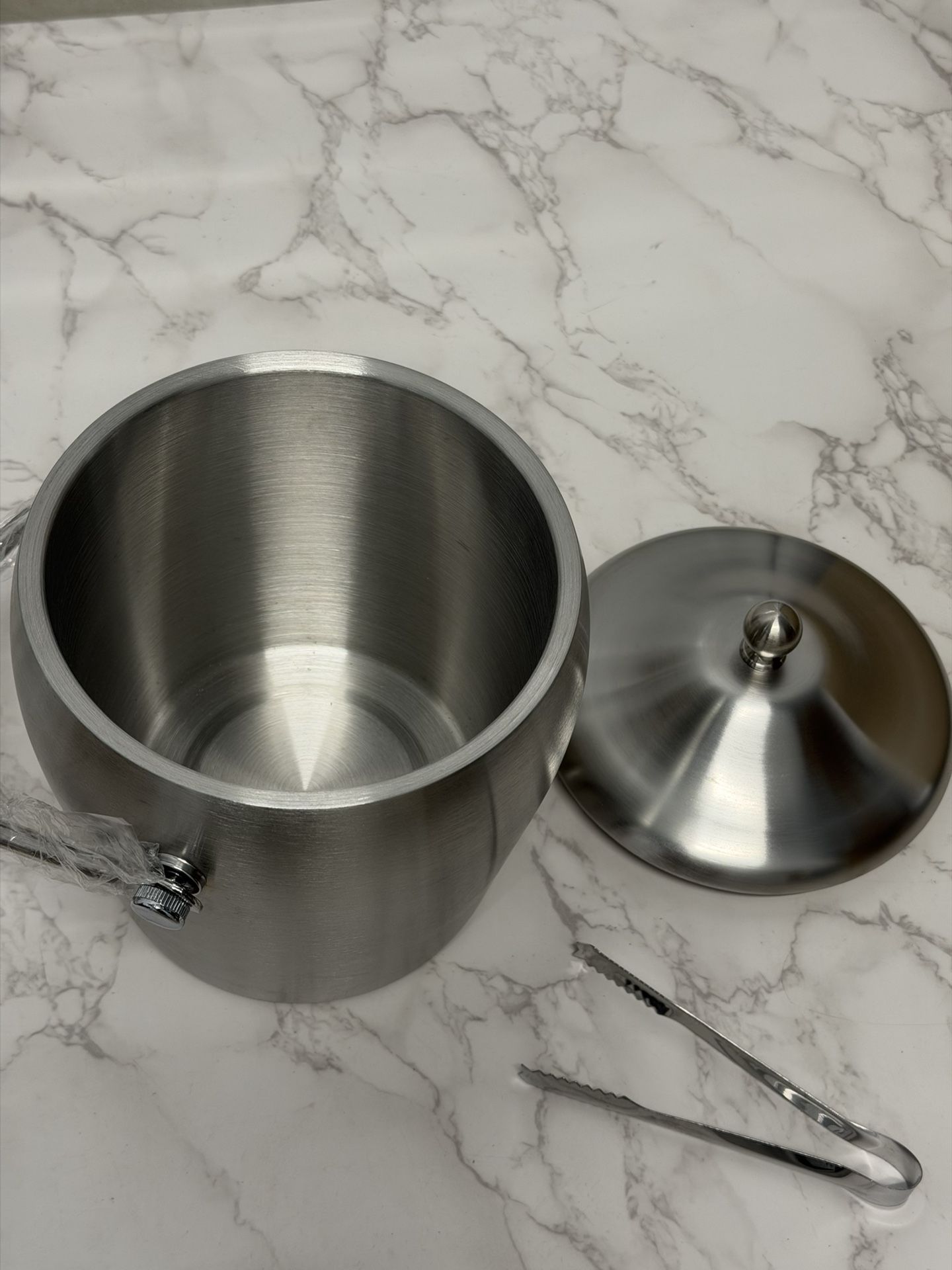 Stainless Steel Insulated Ice Bucket with Lid & Tongs
