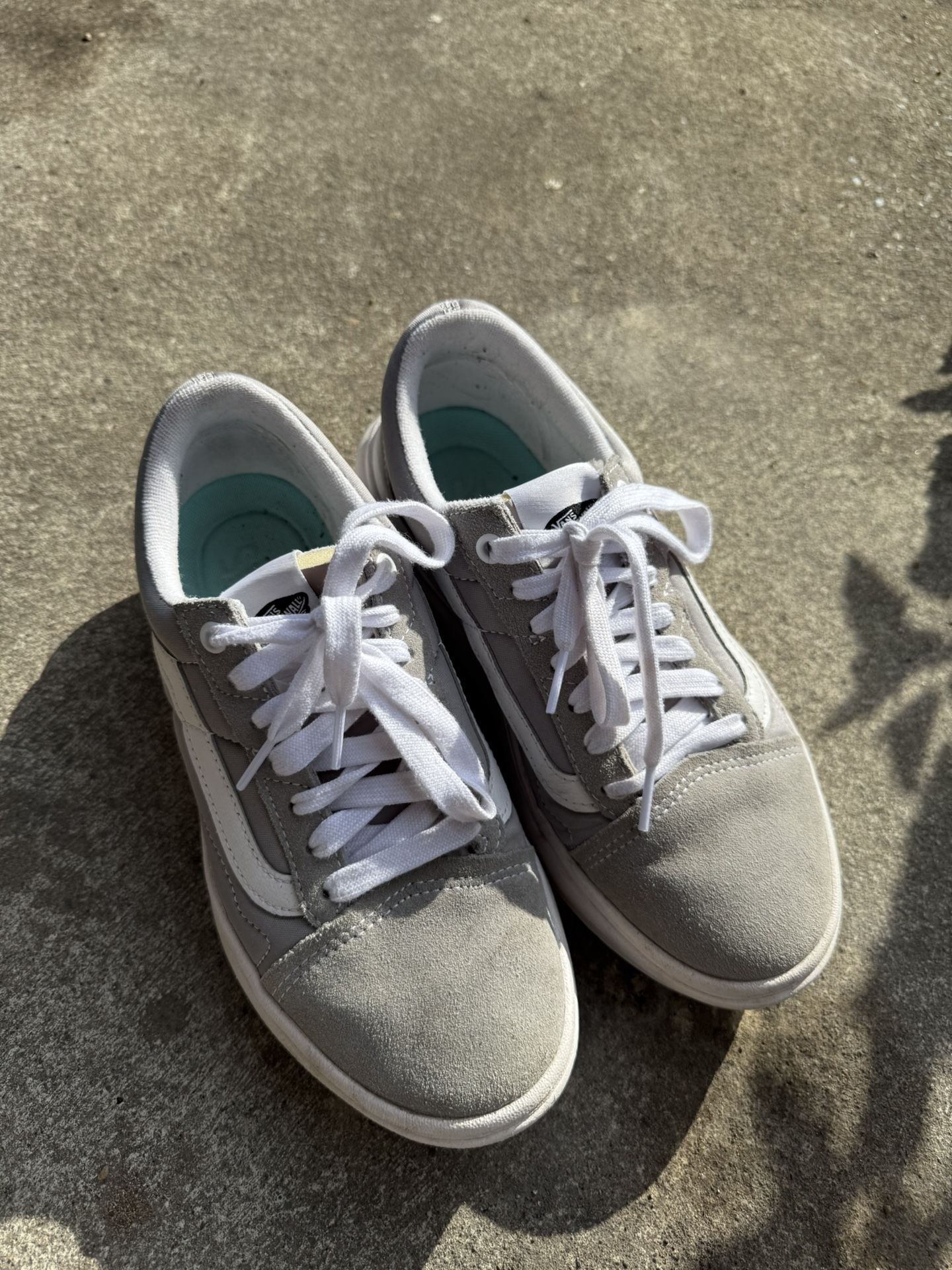 Barely used pair of classic Vans sneakers in ladies size 8. Stylish grey and white color combo that goes with just about anything—jeans, shorts, or even a casual dress. Super comfy with that timeless Vans vibe. • Minimal wear, great condition • Clean inside and out • Smoke-free home Perfect for back to school, skating, or everyday wear. Local pickup preferred. Message if interested!