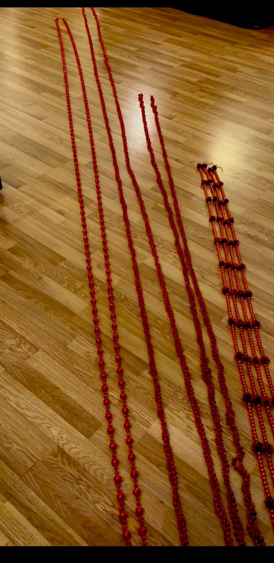 Quality, decorative, long bead strands reflective, shine, and are larger, not small beads. The reds are a beautiful color, but camera does show the gorgeous red. Faceted strands, triple braid cluster strands, strands with sequin roses. High quality, durable long-lasting. Great to wrap around, hang, as garland, on table, or we put on table in glass column vases. Purchased years ago and kept as they’re beautiful and excellent quality. I knew they’d be expensive to replace. - 4 strands 73” long each. (6ft 1 inch each) (132 beads ea. and 13 flowers on each (24 ft 4” for all 4) - 1 three strand braided cluster strand 444” (37 ft long) - 1 three strand braided cluster strand 216” (18 ft) - 2 Strands reflective alternating large and smaller beads 176” per strand (14ft 8”) each strand Or 29’ 4” for both Great for Valentine’s Day decorations, birthdays, celebrations, or holidays. $39 for all of them In Gilbert
