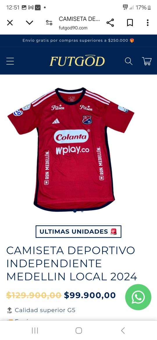 Deportivo Independiente Medellin Colombian soccer jersey, unisex, size Xl