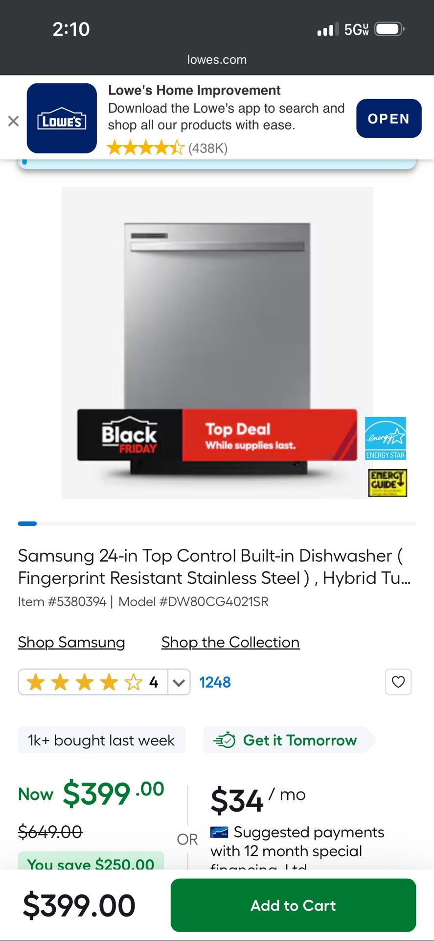 Samsung smart dishwasher. Used a couple times.