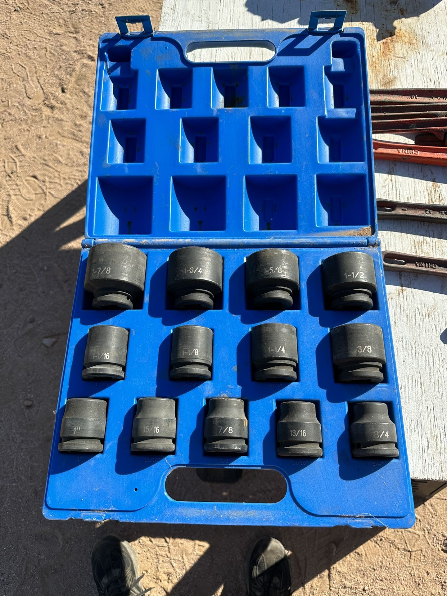 Heavy duty 3/4 drive impact socket set, 3/4-1 7/8 in sizes. $150 obo