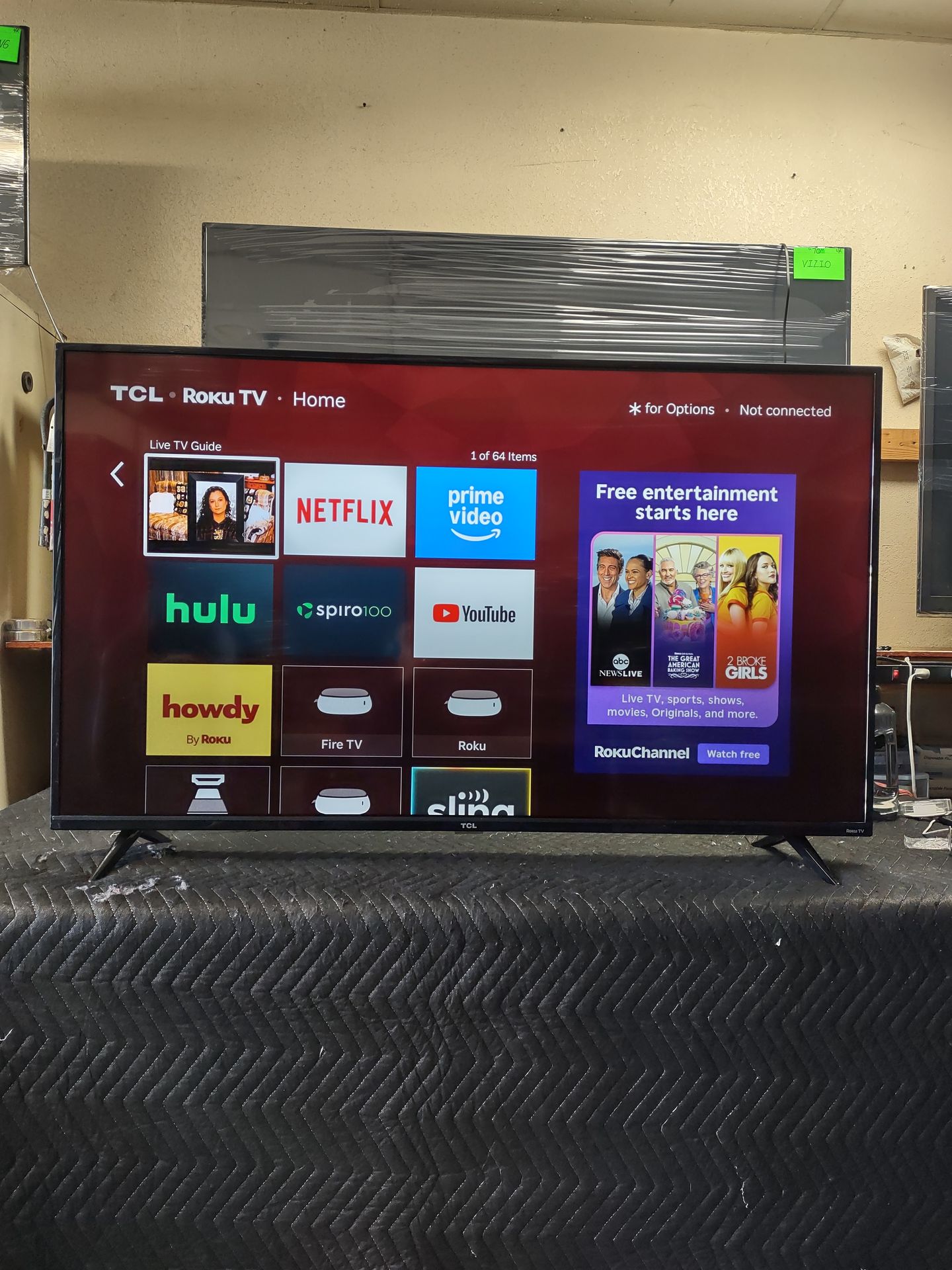 55 inch TCL Roku 4k smart tv beautiful tv comes with remote control shows great picture works perfect guaranteed