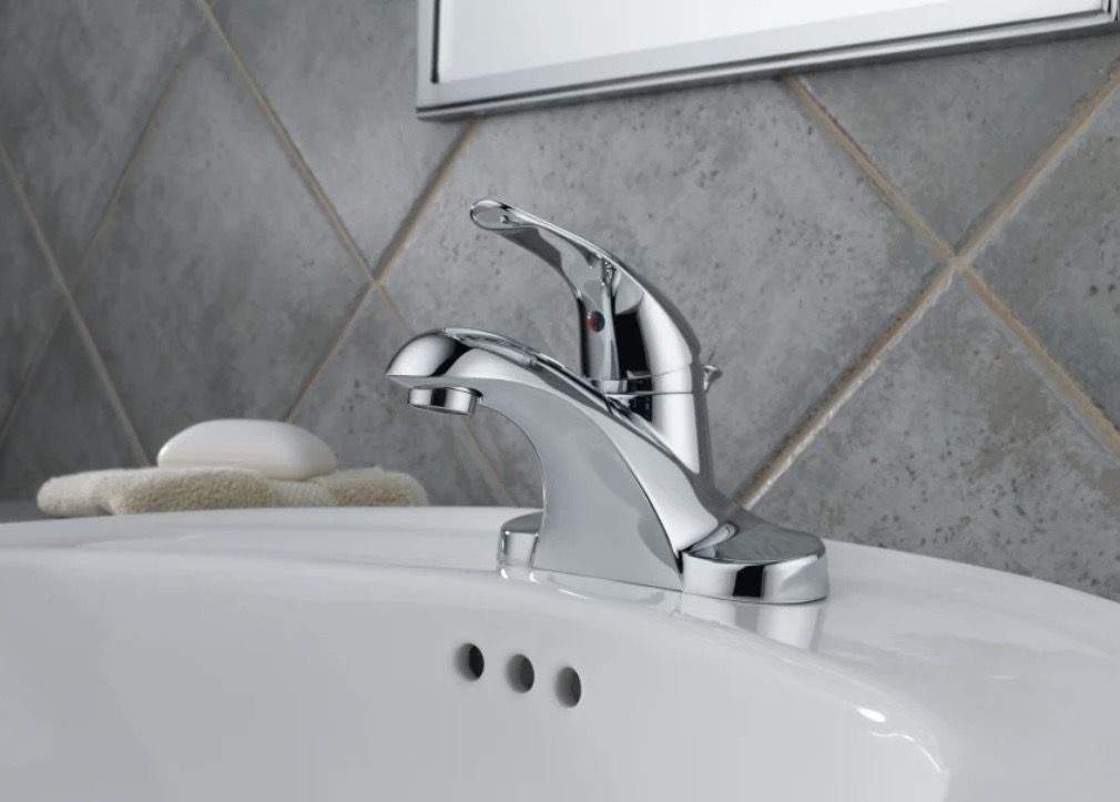 Delta Foundations 3 Hole, 4” Centerset Bathroom Faucet w/Pop-Up Drain Assembly Chrome New