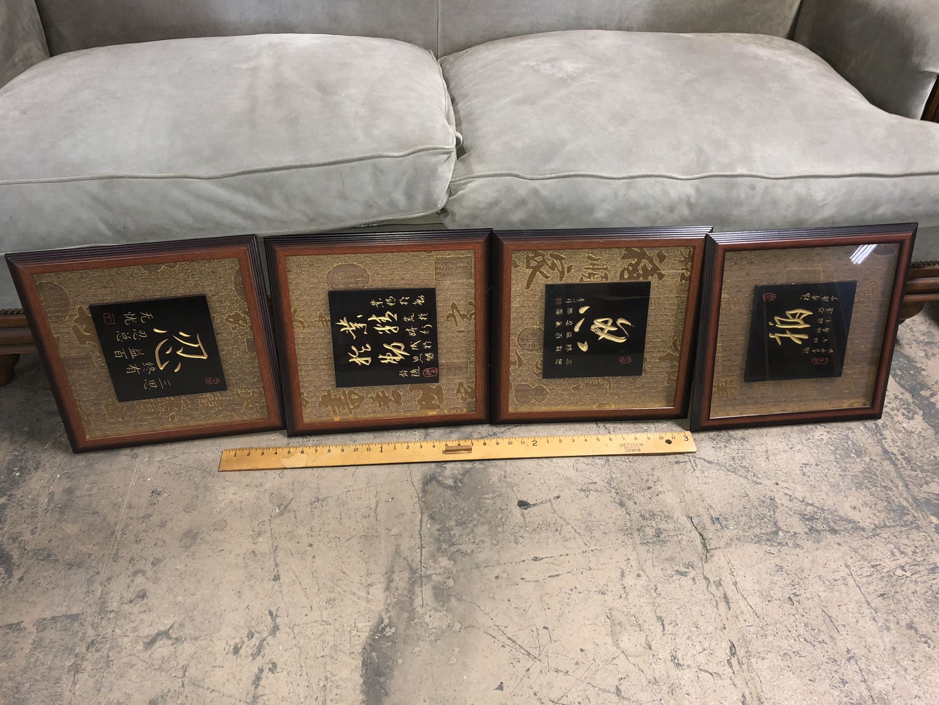 4 Framed Chinese Gold Leaf Calligraphy Poems