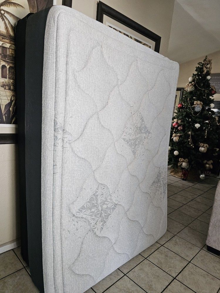 Queen Mattress Pillow Top And Boxsprin rails $280 Pick Up Victorville
