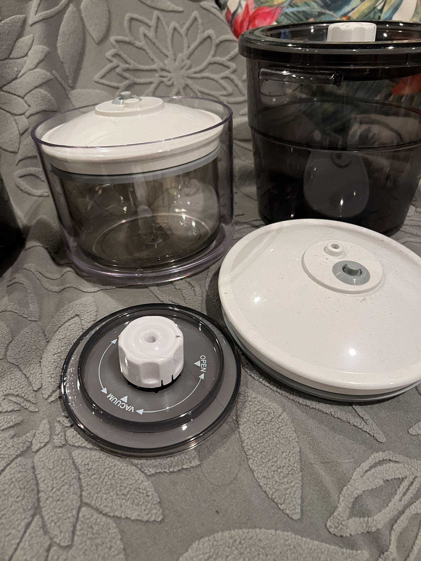 FOODSAVER VACUUM WITH EXTRA BAGS THREE DIFFERENT SIZE CONTAINERS FOR SEALING. Used only twice.
