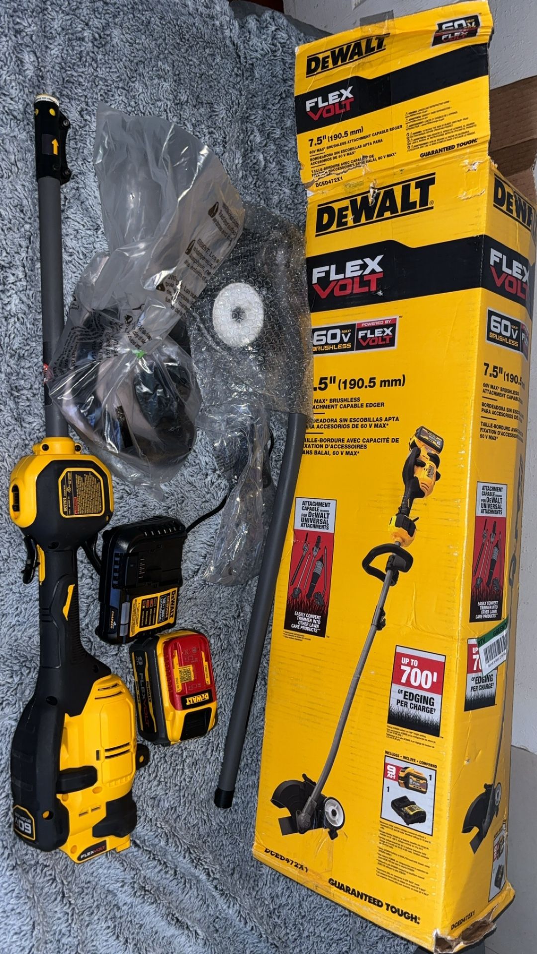 Dewalt edger comes with 9 amp battery and. Charger