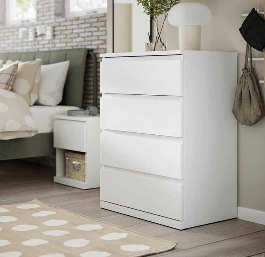 White IKEA dresser Minor damage inside one drawer see last photo Height, 39 1/2 inches length 32 inches depth 19 inches have matching loft bed $100 and bookshelf $30