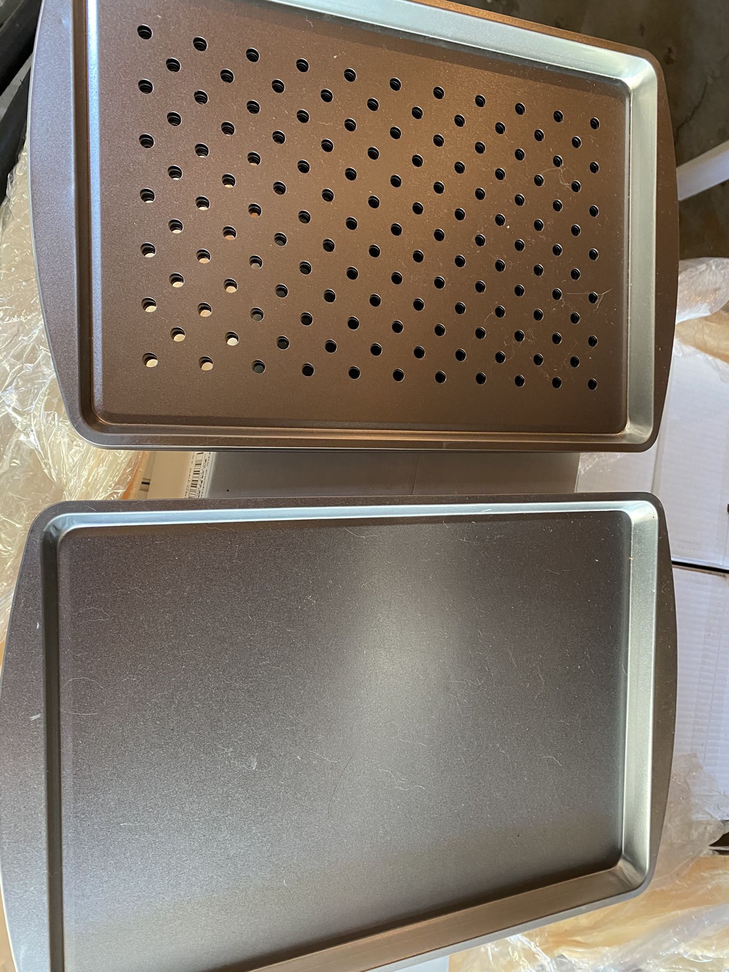 We have 6 with holes We have 12 without Thin metal home baking sheets 9.5x15