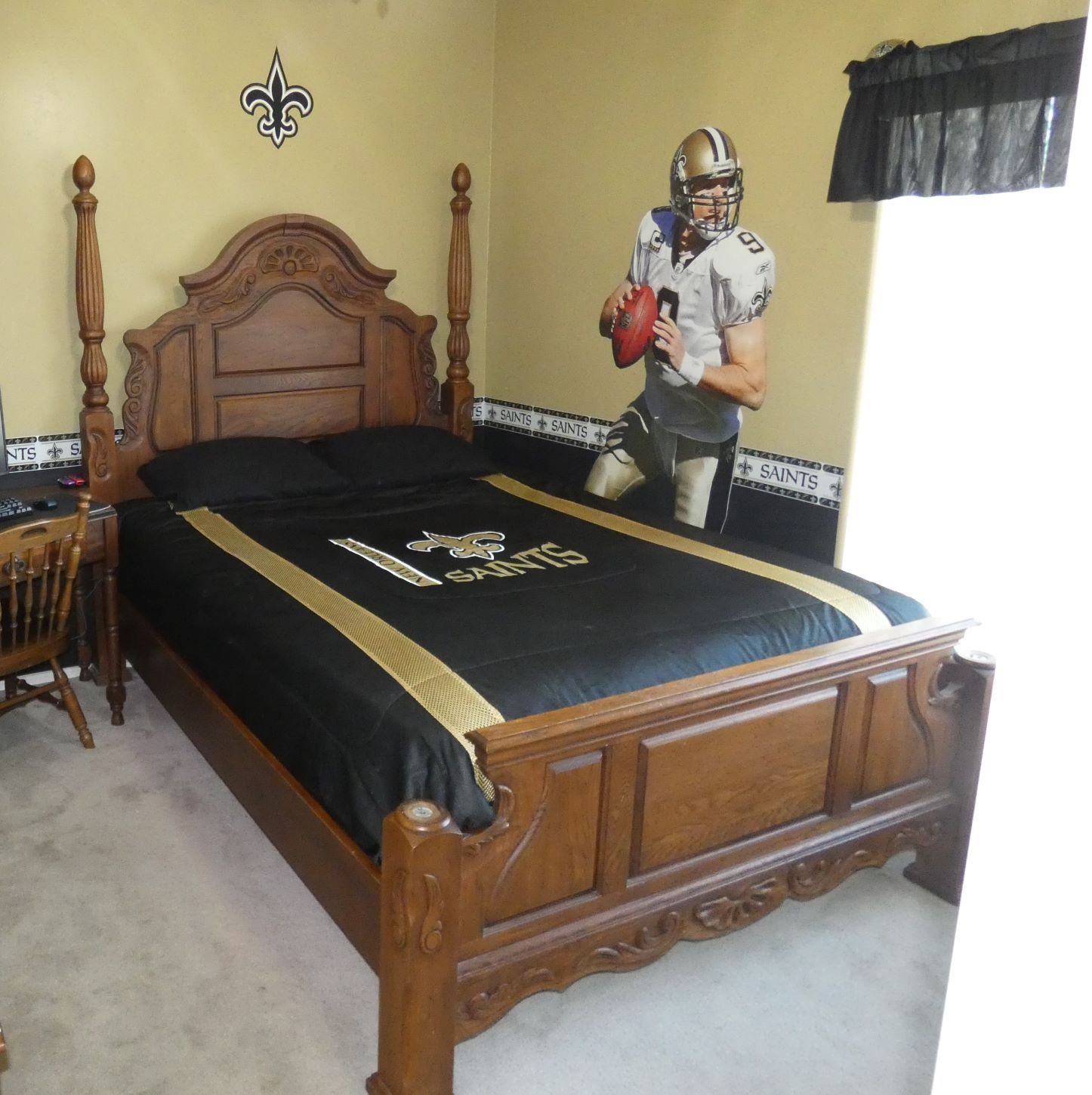 Mattress/Box spring not included Solid wood headboard, footboard, and side rails for queen mattress & box spring set. Includes four posts (two on footboard not shown). Bed frame comes with all cross rails to support box spring & mattress and all required hardware. Used, but in great condition. Dark cherry finish. $360.00 Must pick up and have vehicle capable to transport. (Hmu for more dimensions)