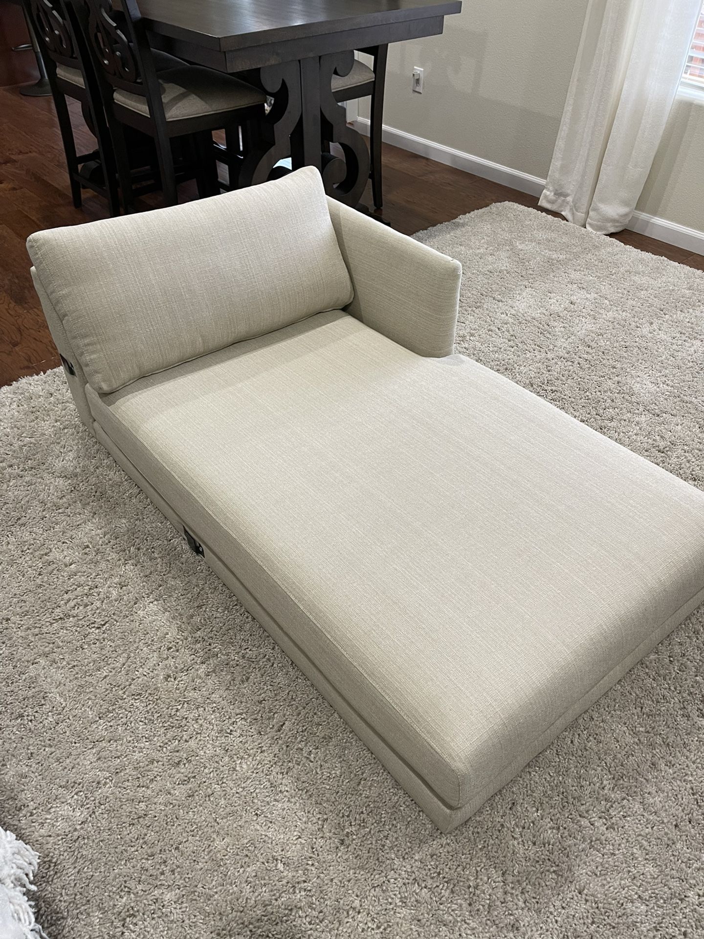 Brand new couch lounger still in box, never used. A light beige color, comes with legs.