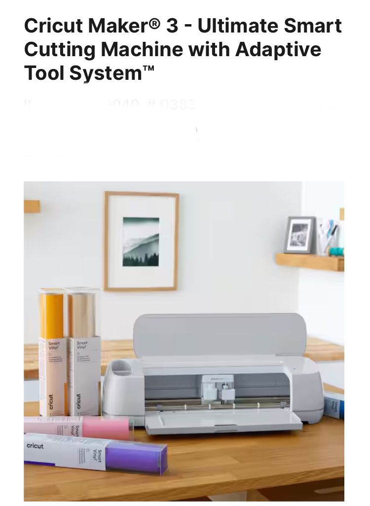 Cricuts Maker 3 Amart Cutting Machine + Remaining Items From Start Up Kit + Extra Vinyl Used a few times but start a business so needed something different