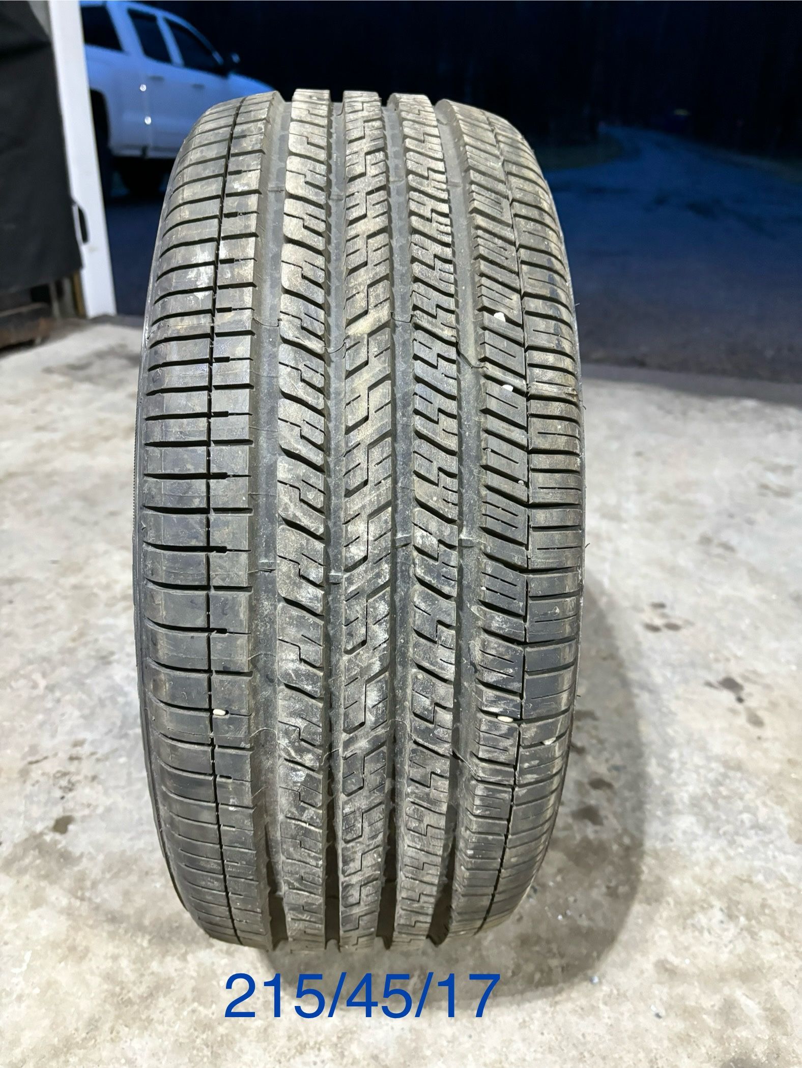 Quantity and size: (1) - 215/45/17 Goodyear Eagle RS-A Tire Tread - Approximately 10/32nds, like new takeoff Condition - No plugs, no dry rot, no shifted belts. Tire holds air and passes state inspection. Retail price - $146.82 Saving from new - $96.82