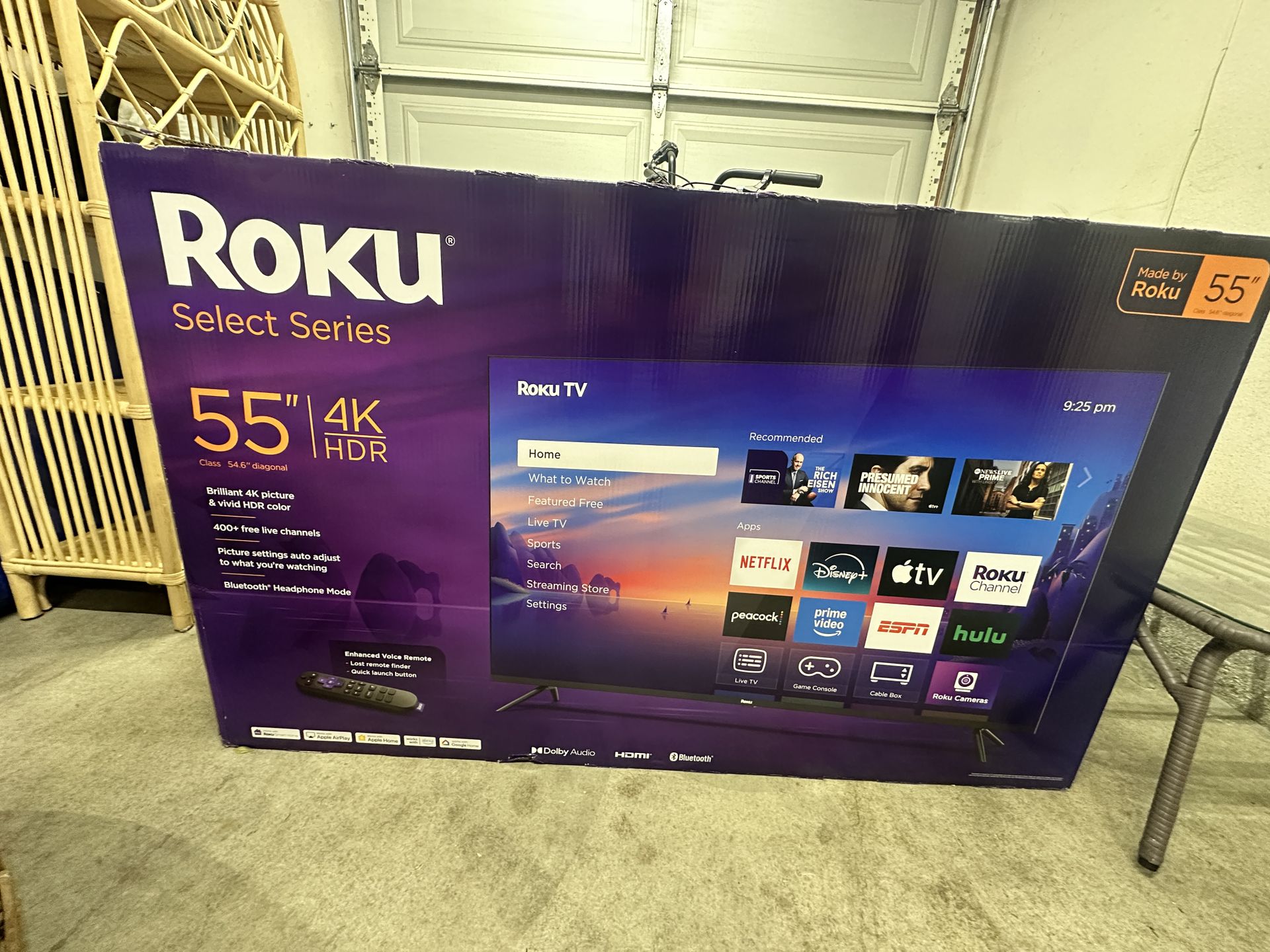 Brand new unopened inbox Roku 55 inch 4K HDR TV.