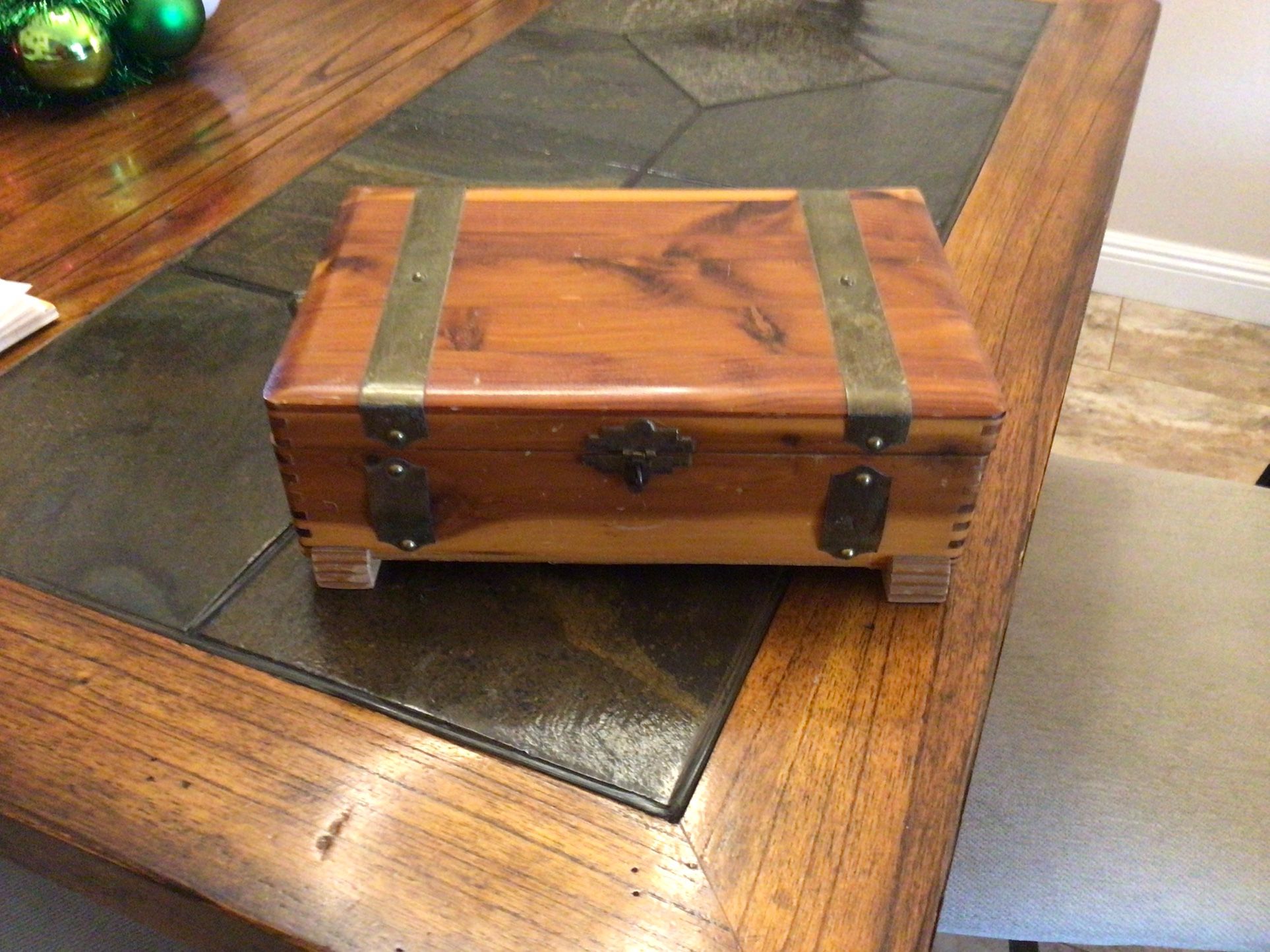 Vintage Cedar Memento Trinket Box Hinged Lid Brass Hardware Two Tone