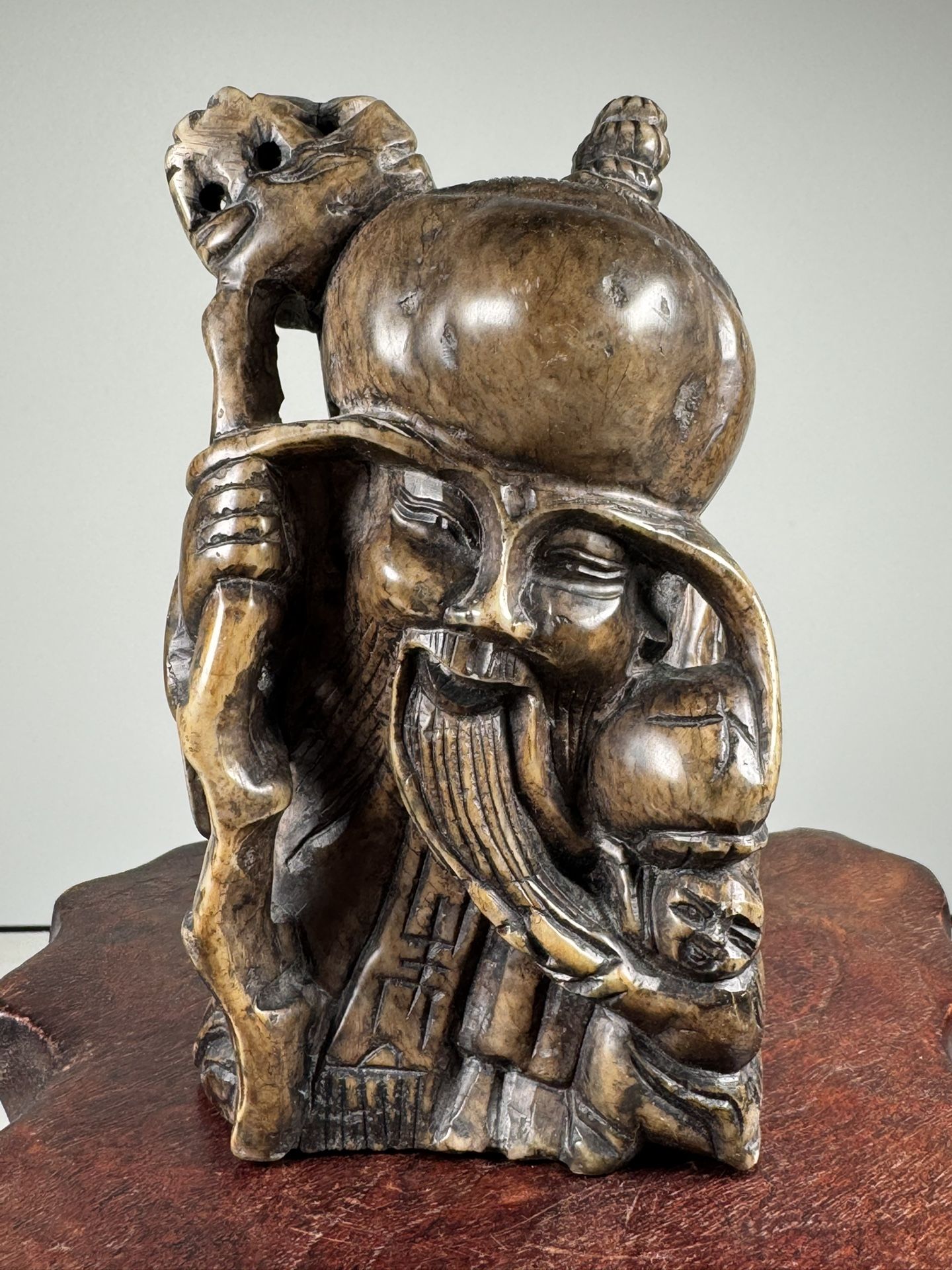 Antique Chinese Qing Dynasty Shoushan Stone Carving Of An Old Man .