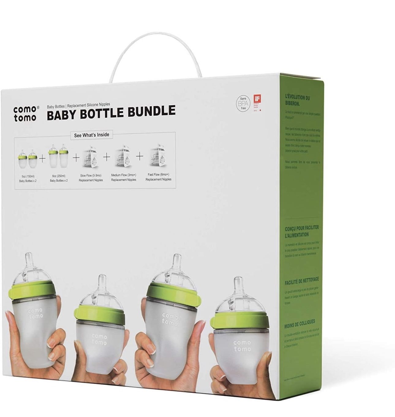 Comotomo Baby Bottle Bundle, Green, (7 Piece Set)