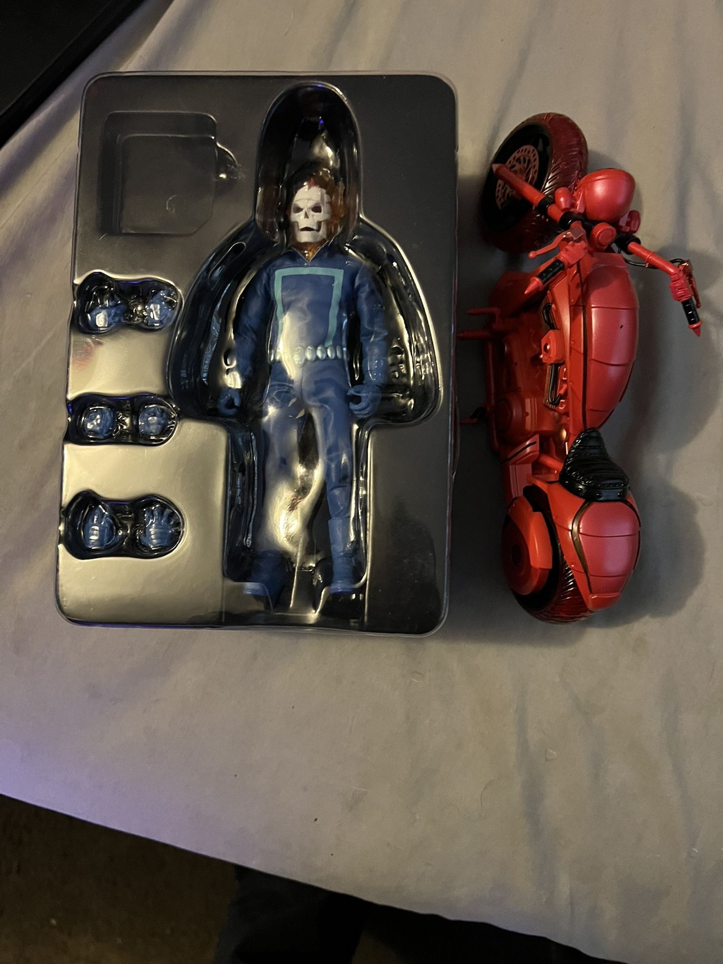 This is a mezco 1/12 ghost rider hit me up with you offers or trades I’m looking for transformers sound wave studio series hiya Godzilla figs or let me know what u have to offer for trade or cash works to